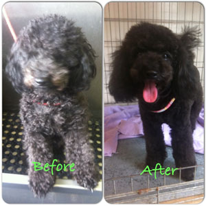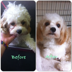 Extremely matted dogs are welcome though it would be kinder to take off their coats and start again, it would be impossible (and unkind) to demat this kind of coat condition.